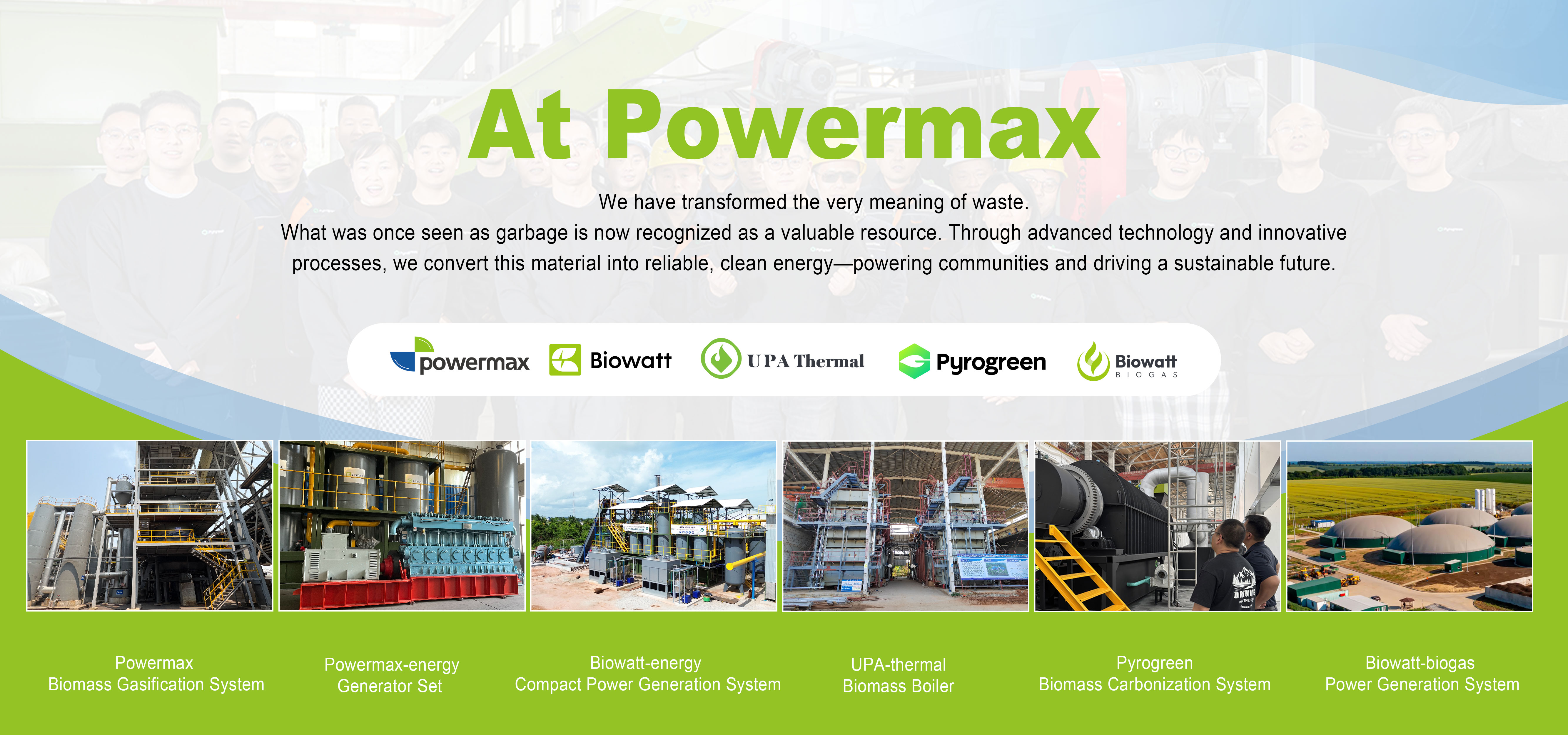Powermax is a green and clean energy company. Powermax has a long experience in producing and supplying environmentally friendly and high performing gasification systems and gas generator sets. We are specialized in biomass, coal and waste gasification to energy systems and have a company history of 30 years. Powermax have since the start of 1986 been specialized in biomass gasification power plants. Our gasification energy systems can convert various types of biomass, waste or coal into: electricity, process steam, drying, industrial heating, district heating and etc. Powermax has its own Development, Design, Construction and Project Management Departments. We have our own in-house gasifiers, gas purification systems and gas generator sets production facilities in China. All our gasification designs benefit from more than 100 reference installations worldwide.