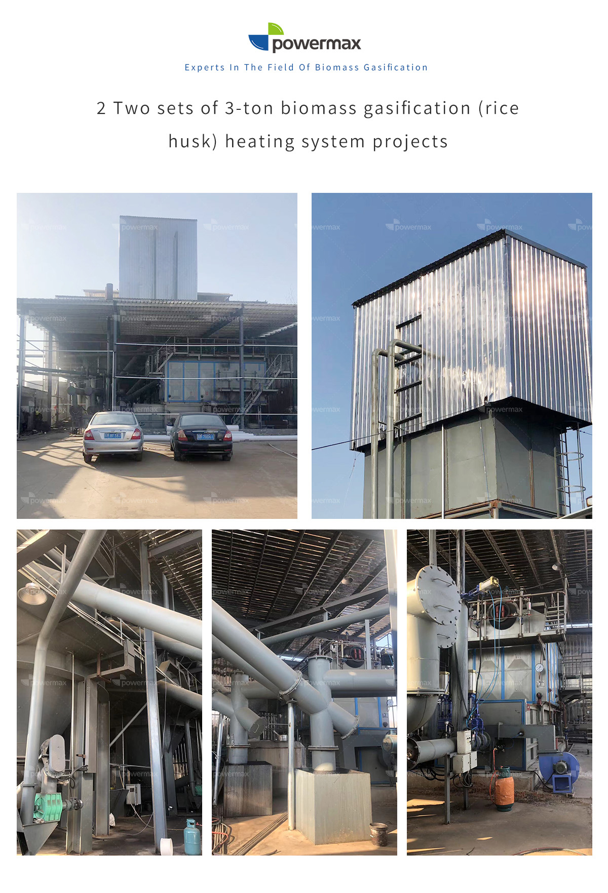 2 sets of 3-ton biomass gasification (rice husk) heating system projects